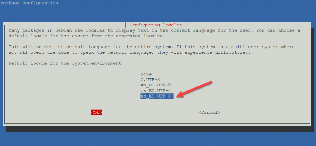Y luego ejecutamos el siguiente comando que se generó al redireccionar a locale-gen: