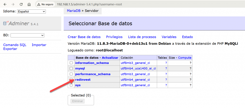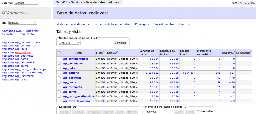 - Múltiples bases de datos: Admite varios sistemas de gestión de bases de datos (SGBD) además de MySQL y MariaDB, incluyendo PostgreSQL, SQLite, MS SQL, Oracle, MongoDB y Elasticsearch.