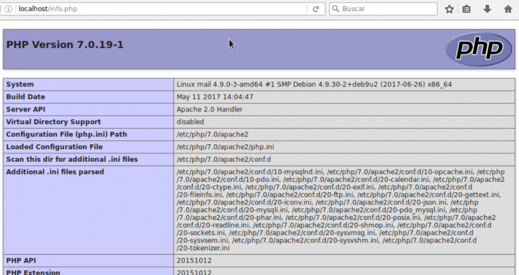 El siguiente paso ahora es la instalación de nuestro lenguaje PHP, el cual nos permitirá conectarnos a las bases de datos a través de las páginas web que creemos, mediante los distintos formularios creados para dicho efecto.