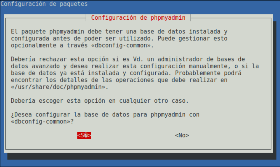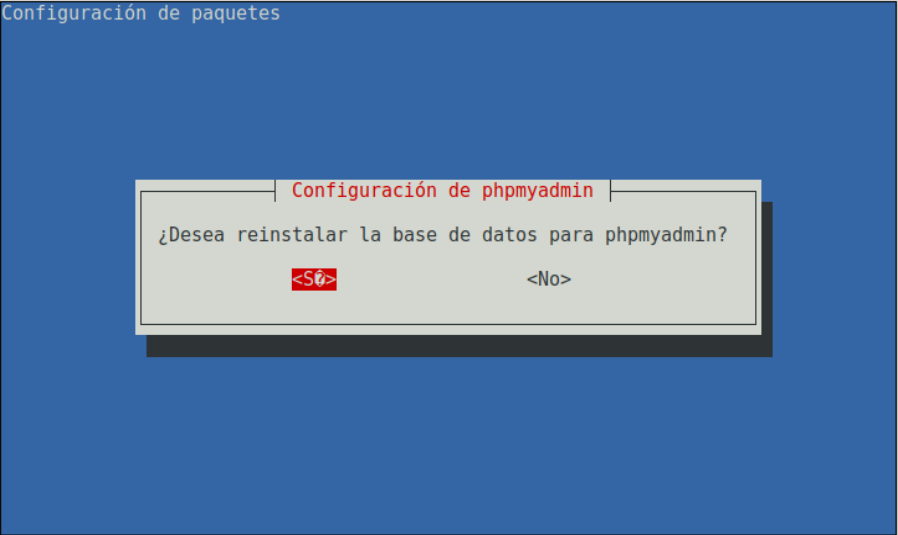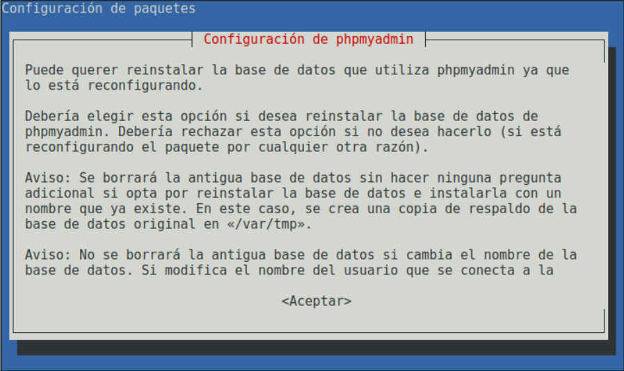 Para eso vamos a re configurar el phpMyAdmin con el siguiente comando por la terminal: