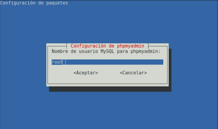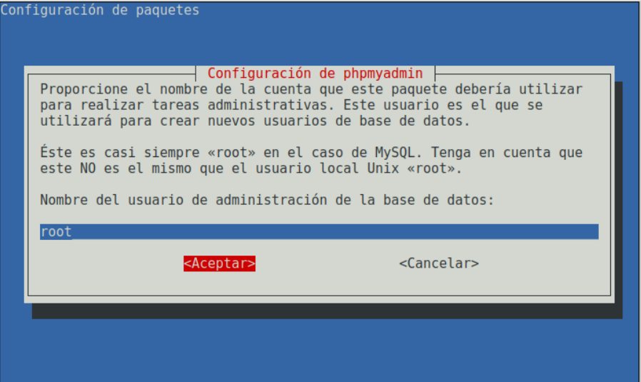 Ahora indicamos el usuario de Acceso al phpMyAdmin, que sera root también; y éste es el usuario que tiene el control de crear, eliminar, etc. bases de datos..!