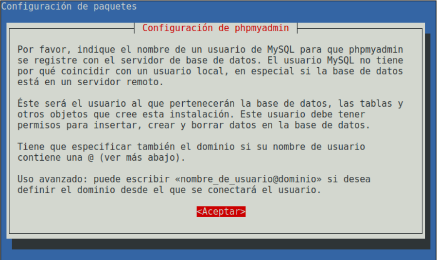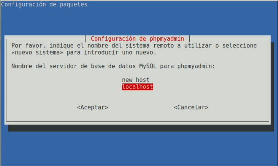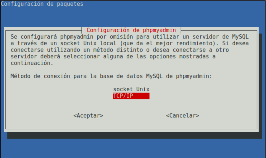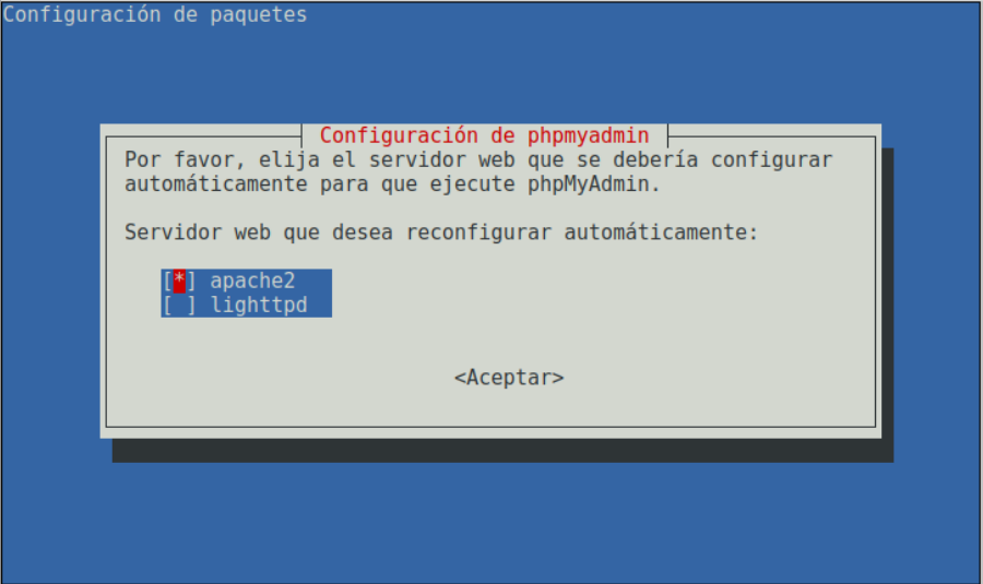 Finalmente indicamos el servidor web que permitirá el acceso al phpMyAdmin